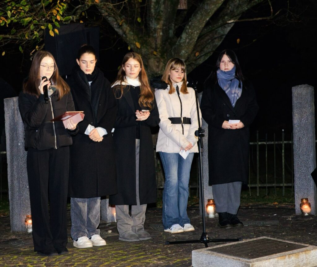 Einen schönen, wichtigen und zur Rede von Pfarrer Michael Striss passenden Beitrag zur Gestaltung der Gedenkstunde leisteten die Schülerinnen der TOB – Sekundarschule der Stadt Wiehl mit ihrem engagierten, leidenschaftlichen Vortrag des jiddischen Liedes „S’brent, brider, s‘brent!“, womit sie eine Analogie zu den aktuellen antisemitischen Ausschreitungen nicht nur auf deutschen Straßen und an deutschen Universitäten herstellten. Der Liedtext von Mordechai Gebirtig gipfelt in der Aufforderung an die angegriffenen, bedrohten Juden, sich zu wehren, nicht tatenlos zuzusehen und sich nicht ihrem Schicksal zu ergeben.