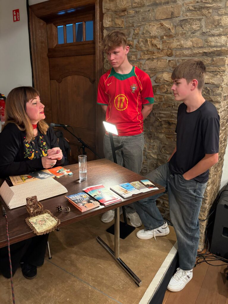 Bianca Schaalburg nahm die Schülerinnen und Schüler behutsam in die Vergangenheit mit, zeigte ihnen, wieVergangenheitsbewältigung geht, was es bedeutet, ein Familienerbe anzutreten und damit auch die Vergangenheit der Familie zu erben….wie man mit einem schwierigen Erbe umgeht, es annimmt und sich mit ihm auseinandersetzt: Schritt für Schritt legte sie die Vergangenheit ihrer eigenen Familie in der Zeit des Nationalsozialismus offen, neugierig, mutig und mit Feingefühl sich den teilweise erschreckenden, erschütternden Fakten und Fragen stellend, statt sie zu verdrängen.